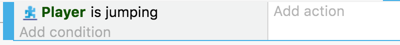 La parte derecha de la ventana muestra los parámetros necesarios para configurar la condición. Aquí, queremos comprobar si el objeto "Jugador" está saltando, así que elija Jugador para el primer parámetro (el segundo se llena automáticamente):