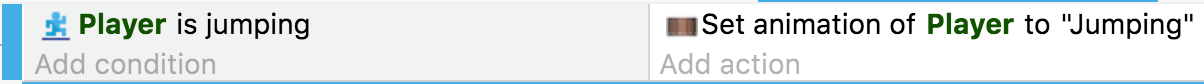 En este primer evento, comprobaremos si el jugador está saltando y cambiaremos su animación en consecuencia. Primero haga clic en Agregar condición.