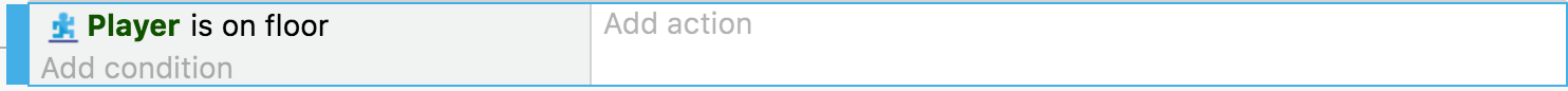 Vamos a agregar un nuevo evento en blanco. Haga clic en 'Agregar condición' y esta vez seleccione la condición 'Está en el piso' dentro de la categoría de comportamiento de Platformer. Tenga en cuenta que puede usar el cuadro de búsqueda en la parte superior para encontrar rápidamente una condición cuando sepa su nombre.