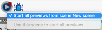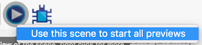 プレビューの開始シーンが固定されていることを示す赤い旗がアイコンに追加されます。これで、エディターでどのシーンを開いているかと関係なく、プレビューの開始シーンが決まります。